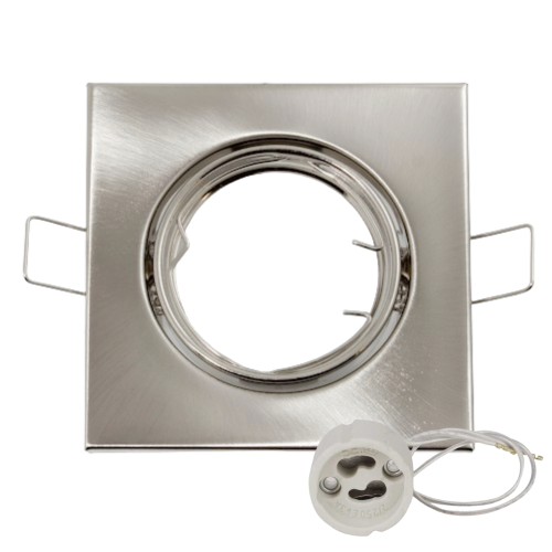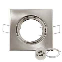 Aro empotrable basculante cuadrado en blanco con unas medidas de Ø103x35 milímetros, diseñado para la instalación de una bombilla LED dicroica GU10. Incluye portalámparas. Medida de corte: Ø78 milímetros.