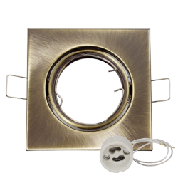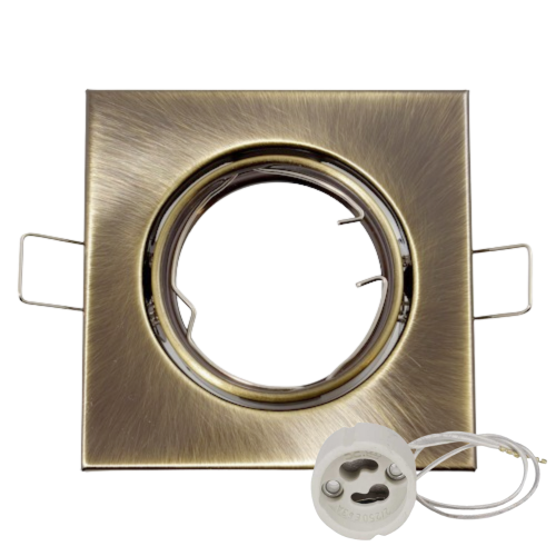 Aro empotrable basculante cuadrado en blanco con unas medidas de Ø103x35 milímetros, diseñado para la instalación de una bombilla LED dicroica GU10. Incluye portalámparas. Medida de corte: Ø78 milímetros.