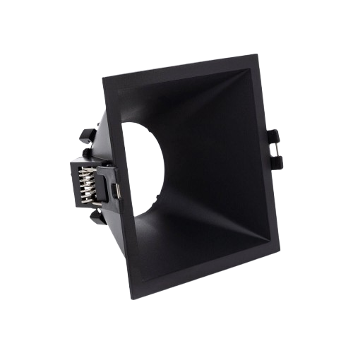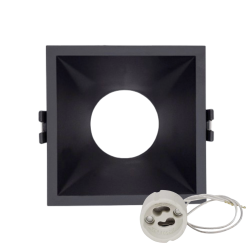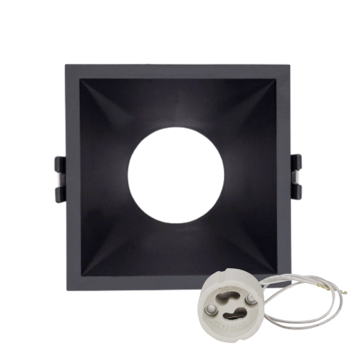 Aro cuadrado empotrable fijo en color blanco con unas medidas de 80x80x35 milímetros, con medida de corte Ø78mm, su diseño polivalente permite la instalación de cualquier bombilla dicroica en GU10/MR16, así como cualquier SPOT con led integrado de Ø50mm.