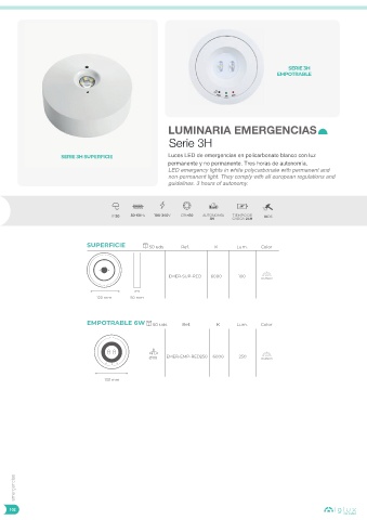 SERIE 3H SUPERFICIE Luces LED de emergencias en policarbonato blanco con luz