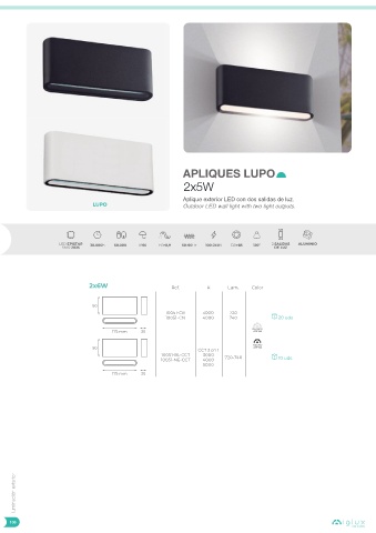 L E D EPISTAR 30.000h 50.000 IP65 F P>0,9 50-60Hz 100-240V C I R >85 120º 2 SALIDAS ALUMINIO