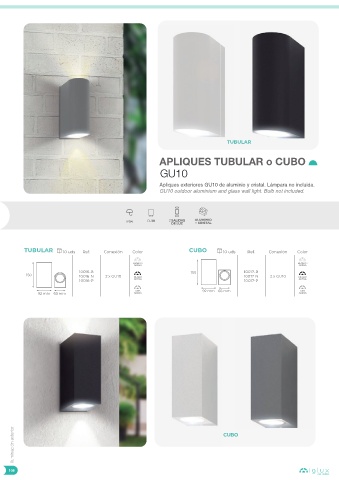 Apliques exteriores GU10 de aluminio y cristal. Lámpara no incluida.