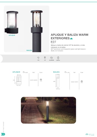 Aplique y baliza de exterior E27 de aluminio y cristal.