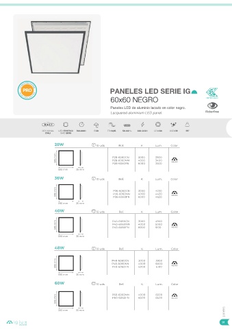 OPCIONAL L E D EPISTAR 100.000h I P20 F P>0,95 50-60Hz 220-240V C R I>80 U G R>19 95º