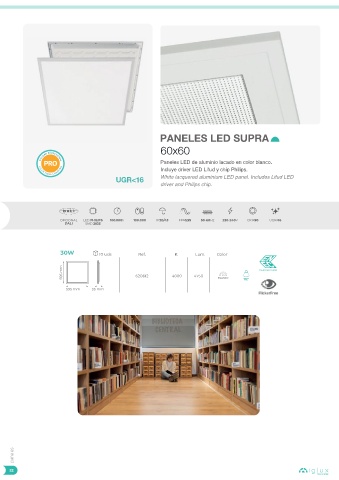 UGR<16 White lacquered aluminium LED panel. Includes Lifud LED