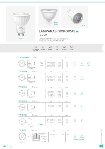 GU10 Lámparas LED dicroicas fijas y regulables.