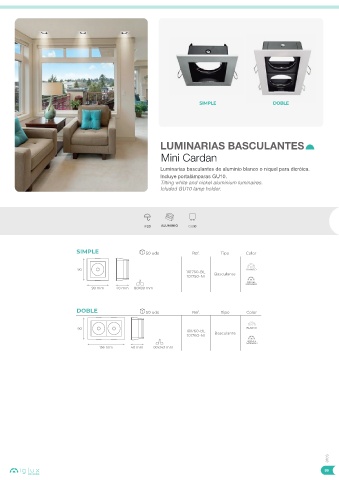 Luminarias basculantes de aluminio blanco o niquel para dicróica.