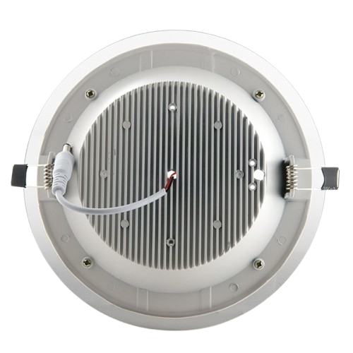 Downlight fabricado en aluminio y cristal. Cuenta con un LED SMD 5370, unas medidas exteriores de Ø240x240x38mm y un corte de 200x200mm. Incluye driver LED.