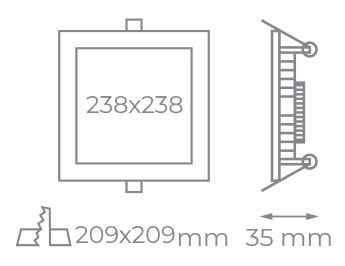 Downlight fabricado en aluminio y policarbonato en níquel. Cuenta con un LED SAN'AN SMD 2835, unas medidas exteriores de 225x225x19mm y un corte de 205x205mm. Incluye driver LED Isolated.