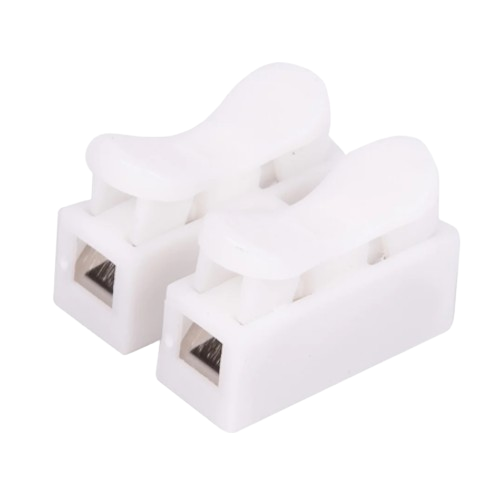 La Regleta con Clip 2 Polos ofrece una conexión rápida sin herramientas, ideal para instalaciones sencillas con una corriente nominal de 5A. Fabricada en PC blanco resistente y con compactas medidas de 20x16x13 mm.