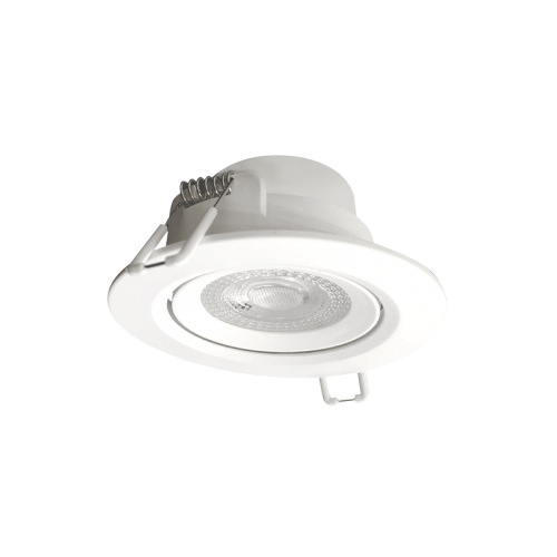 Downlight fabricado en policarbonato blanco, cuenta con un chip LED SAN'AN 2835, un ángulo de apertura de 120º con unas medidas externas de Ø69x38mm y una medida de corte Ø53mm. Luz neutra.