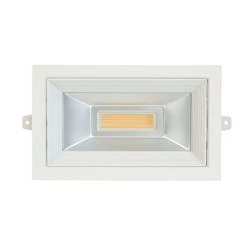 Bañador de pared fabricado en aluminio lacado en blanco. Cuenta con una potencia de 45W 3650 lúmenes, un ángulo de apertura de 90º y unas medidas de 156x240x125 milímetros. Medida de corte: 210x140 milímetros.