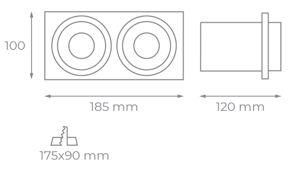 Empotrable doble de aluminio lacado en blanco con unas medidas de 185x100x120mm y un corte de 175x90mm que se convierte en proyector 360º. Disponible en luz neutra.