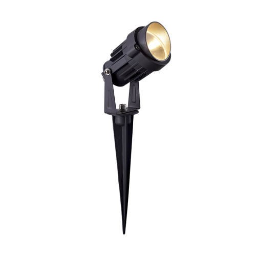Proyector de jardín fabricado en aluminio y cristal, cuenta con un portalámparas GU10 y un pincho para anclar a la superficie. Funciona a 220V, aunque es compatible con el conversor 10164 para convertirlo en 12V.