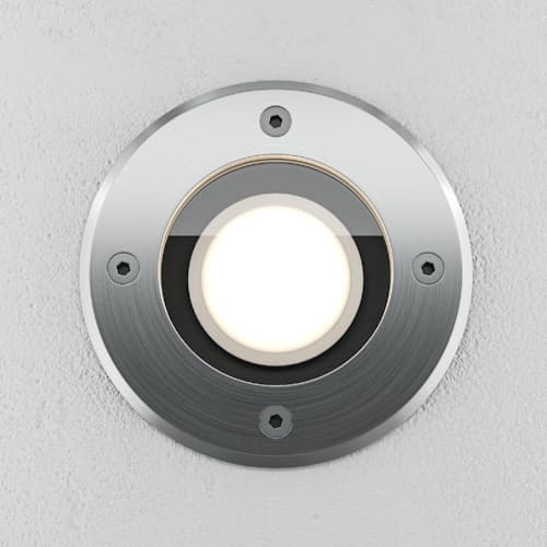 Empotrable de suelo fabricado en aluminio y cristal con un diseño redondo. Cuenta con portalámparas GU10, un IP67 y 3 años de garantía.