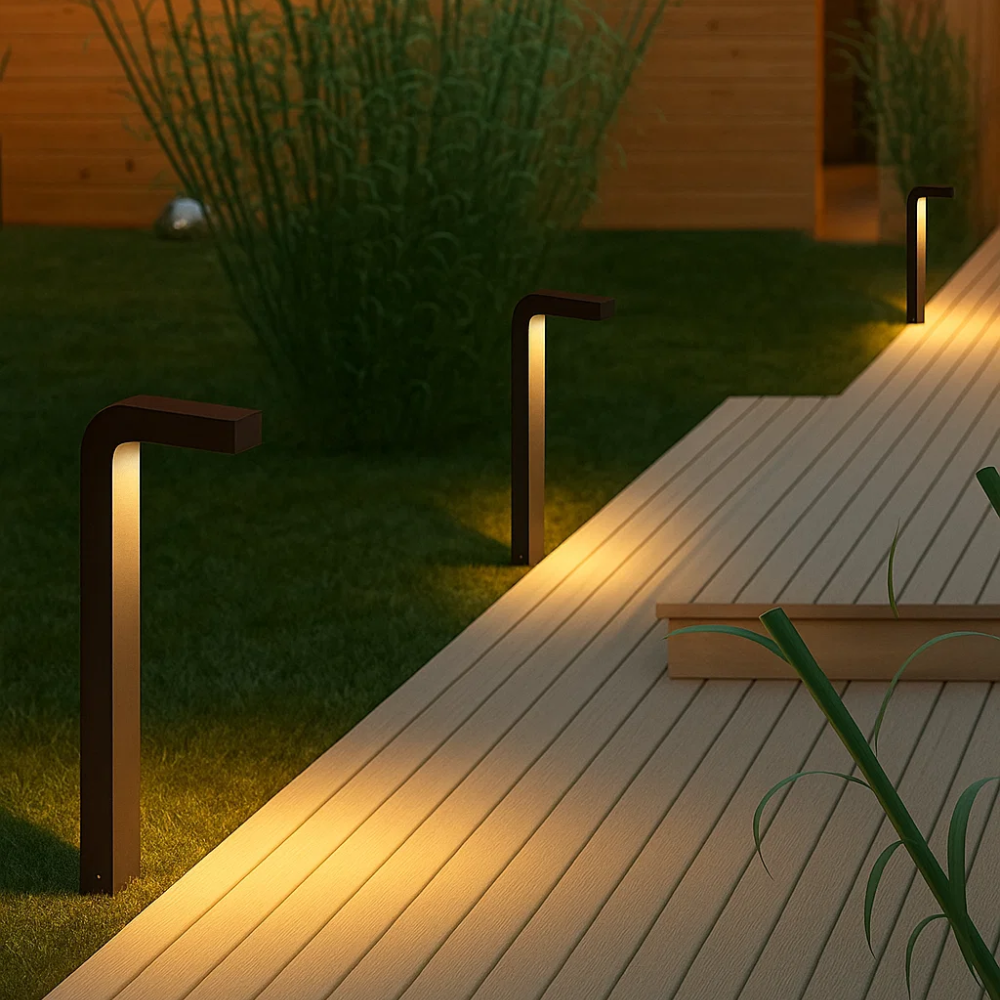 Baliza WAVE con sensor PIR - Iluminación automática de 6W (320 lúmenes) en cálido 3000K. Fabricada en aluminio negro resistente (IP54), ideal para seguridad y decoración exterior. Sensor de movimiento integrado para activación inteligente. Medidas: 516x275 mm.