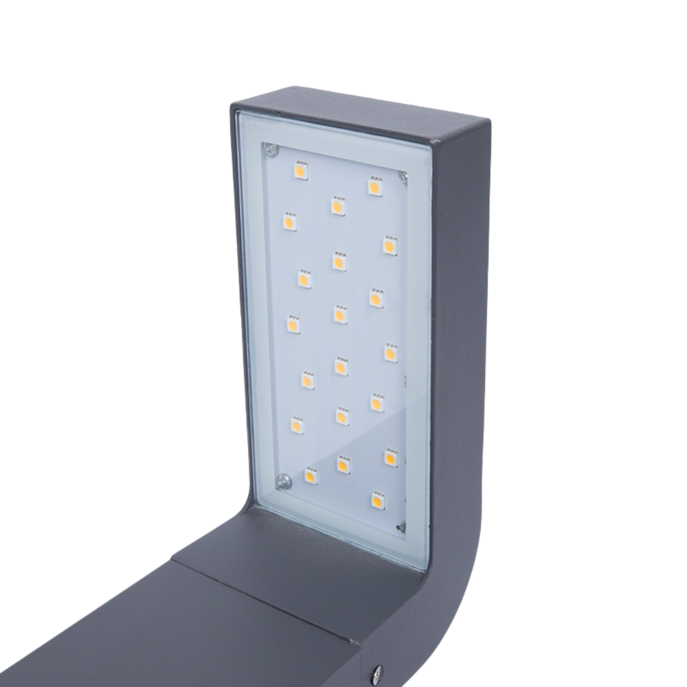 Aplique LED 8W con luz integrada indirecta fabricado en aluminio. Al mismo aplique se le puede añadir un poste para convertirlo en baliza.