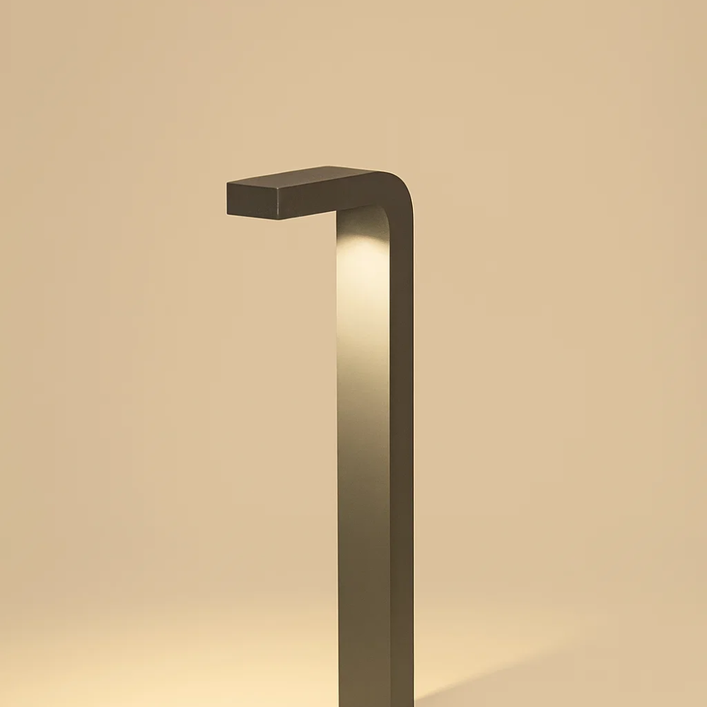 Baliza de exterior fabricada con un cuerpo de aluminio y un difusor de cristal transparente con opción translucido con casquillo E27. Acabado en gris antracita con pintura especial anti-corrosión.