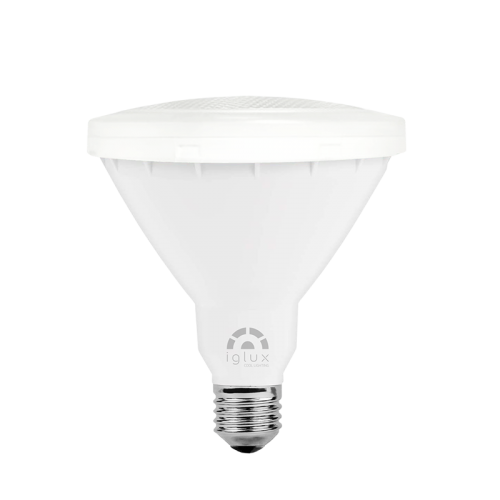 Bombilla LED PAR38 E27 con chip LED Epistar SMD2835, cuenta con unas medidas de Ø121x133 milímetros, un ángulo de apertura de 30º, FP>0,9 y un IP65. Bombilla LED PAR38 en luz cálida (3000ºK) 15W 1200 lúmenes.