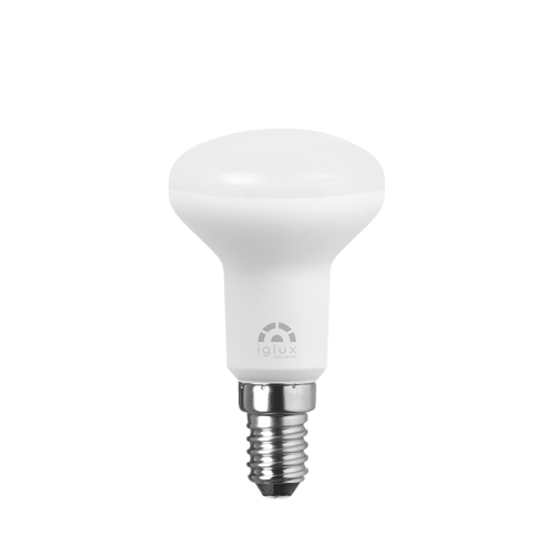 Bombilla LED Reflectora R50 con unas medidas de Ø50x105 milímetros y un casquillo E14. Cuenta con una potencia de 5W 420 lúmenes, un FP>0,6, CRI>80 y un ángulo de apertura de 120º. Luz neutra.
