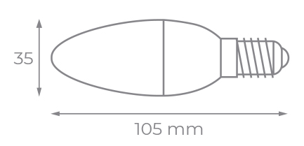 Bombilla LED formato vela E14 con unas medidas de Ø35x105 milímetros. Cuenta con una potencia de 5W 400 lúmenes, un ángulo de apertura de 270º y una tensión de entrada de 180-250V. Disponible en luz cálida.