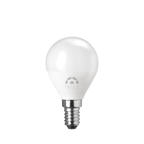 Bombilla LED miniglobo con casquillo E14, una potencia de 5W 450 lúmenes. Dispone de unas medidas de Ø45x80 milímetros, un CRI>80,un ángulo de apertura de 270º y FP>0,6. Luz fría.