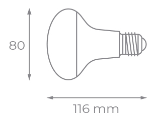 Bombilla LED Reflectora R80 con unas medidas de Ø80x116 milímetros y un casquillo E27. Cuenta con una potencia de 12W 1050 lúmenes, un FP>0,6, CRI>80 y un ángulo de apertura de 120º. Luz neutra.