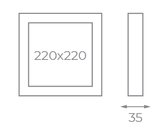 Downlight de superficie fabricado en aluminio y policarbonato en blanco. Cuenta con un LED SAN'AN SMD 2835, unas medidas exteriores de 170x170x35mm y un ángulo de apertura de 120º. Incluye driver LED Isolated.