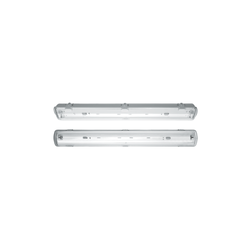 Pantalla estanca simple para tubo LED fabricada en ABS y difusor de policarbonato transparente. Cuenta con unas medidas de 80x64x660mm. La conexión se realiza por un extremo. No incluye tubo LED.